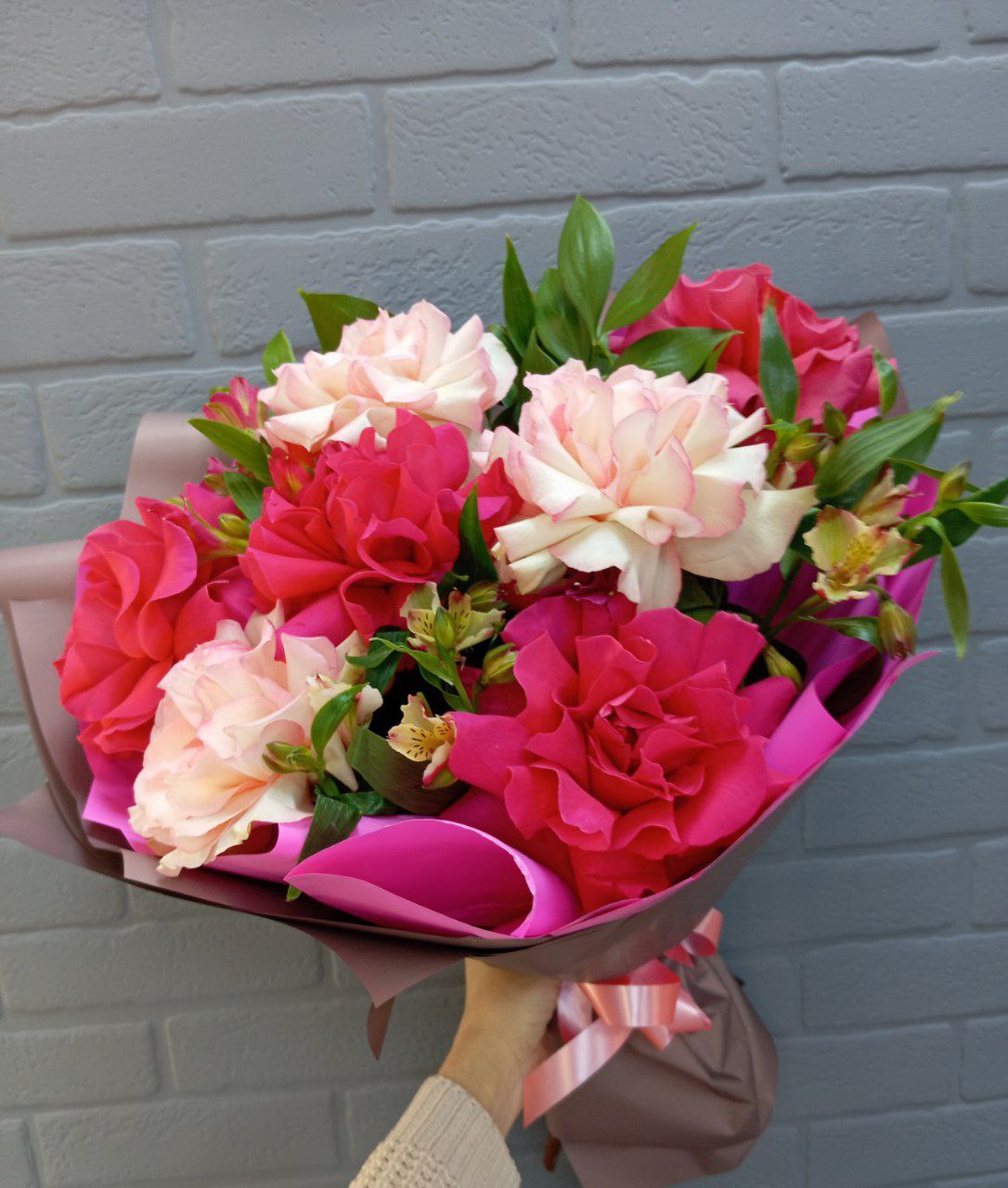 Букет из ажурных роз микс с альстромерией