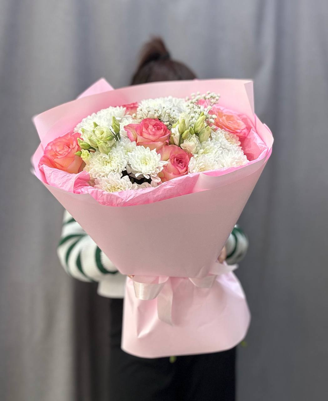 Состав: розы, хризантема, гипсофила, эустома